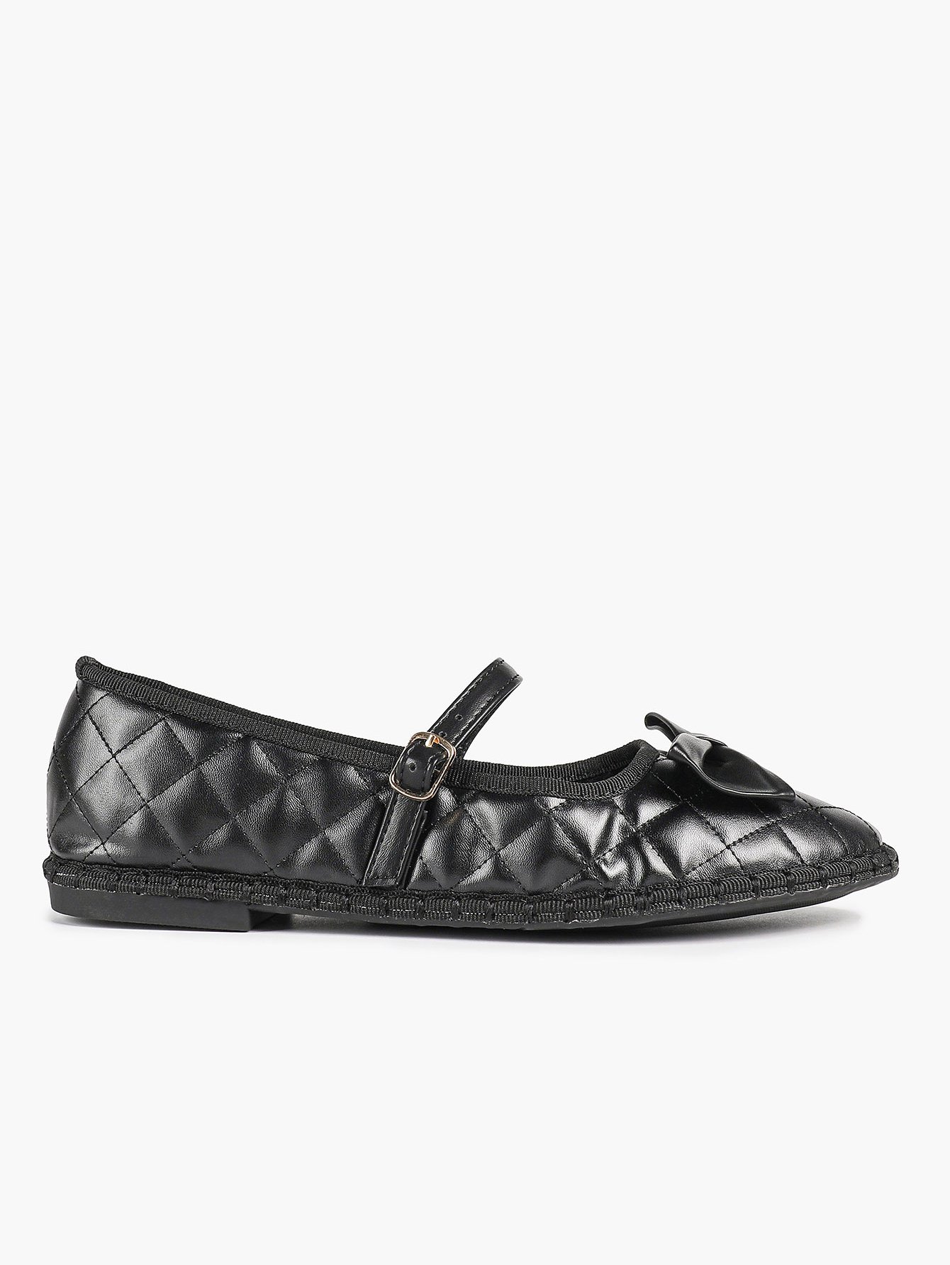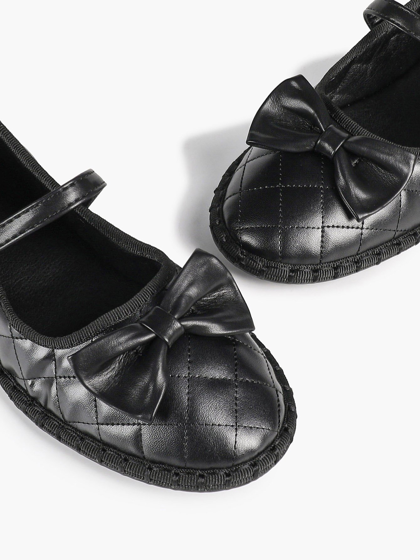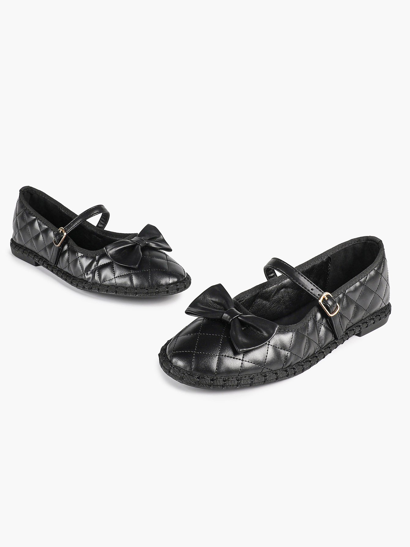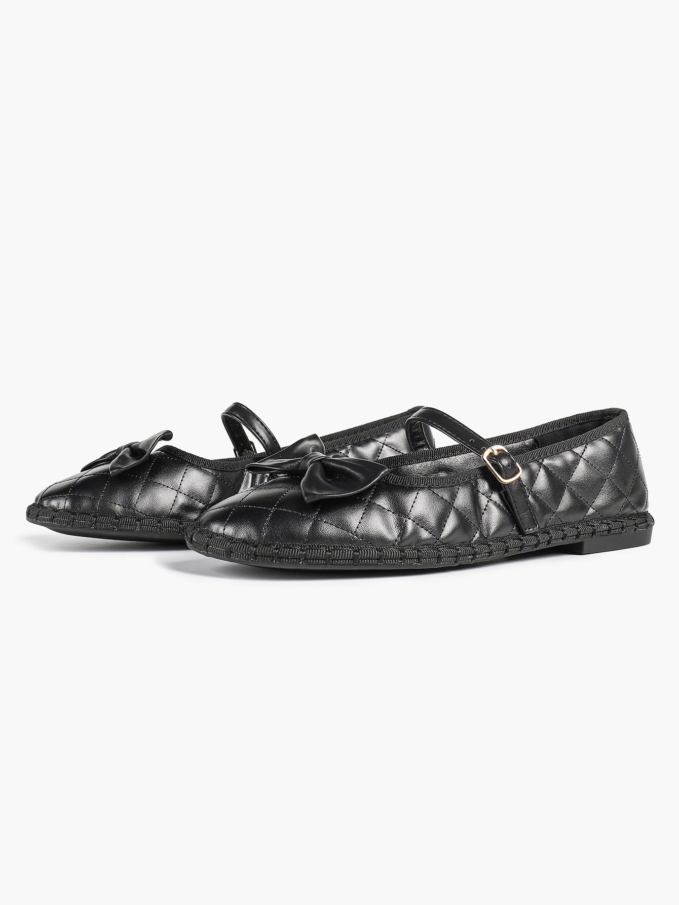 Black Quilted Leather Bow Mary Jane Pointed Toe Flats | Daily Wear, Date Night Shoes