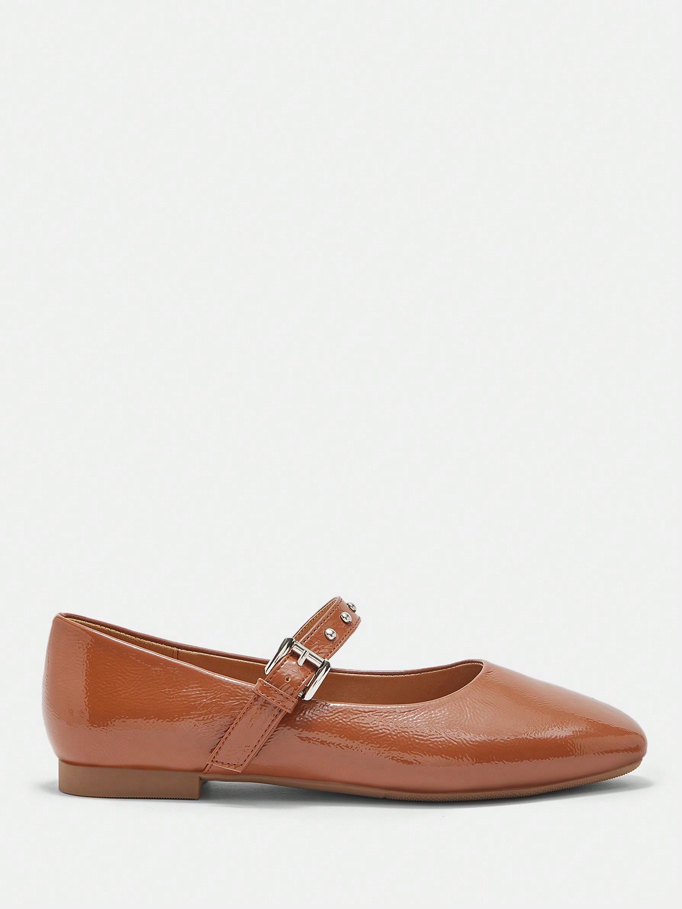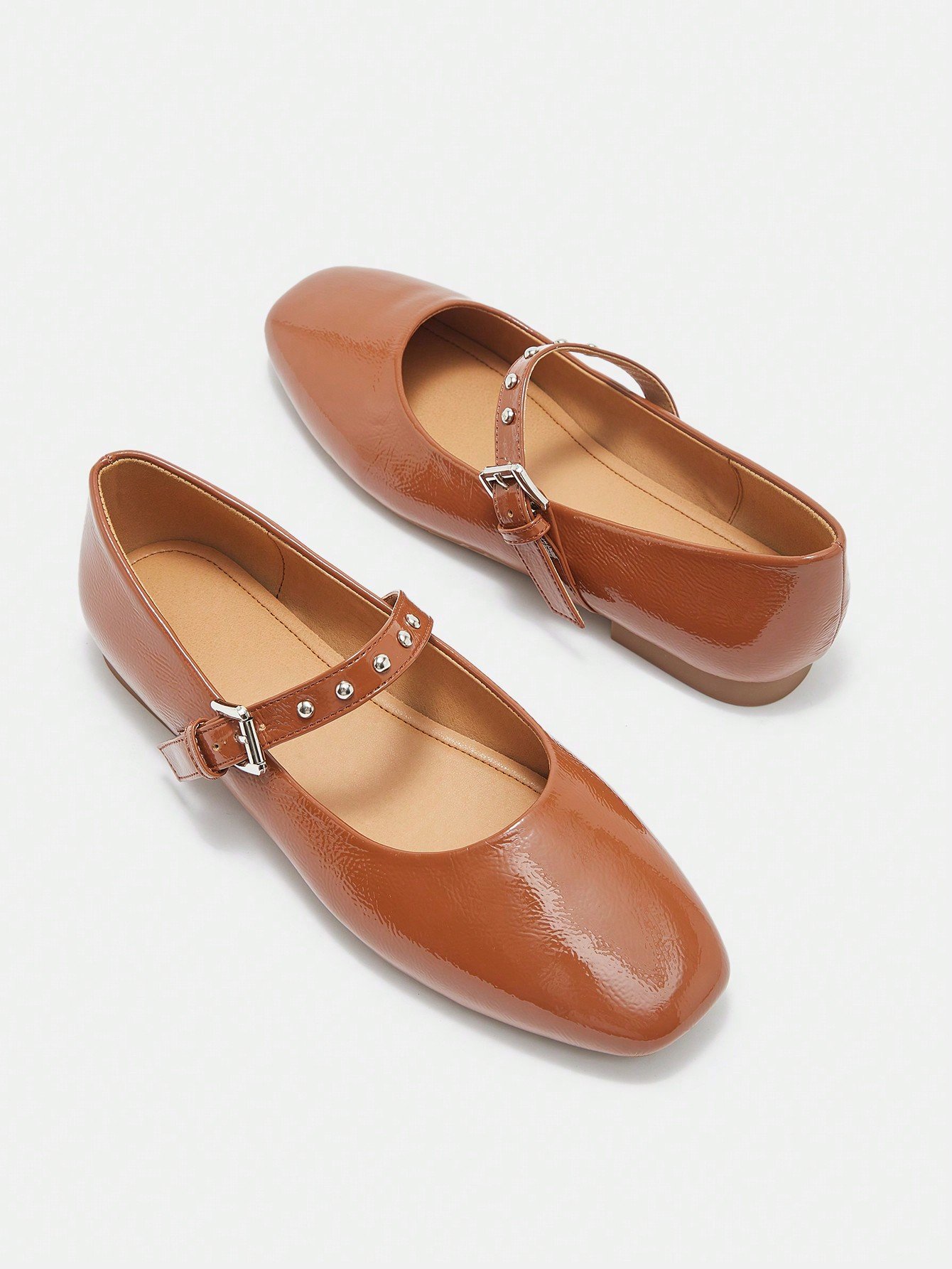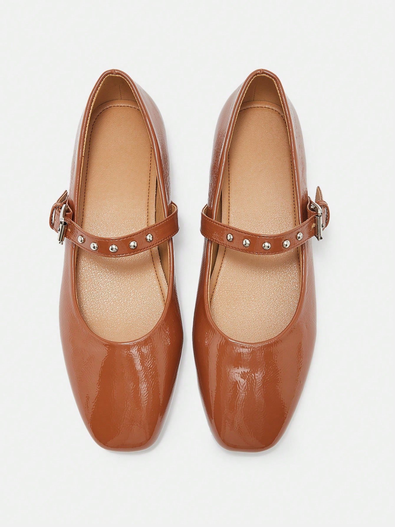 A fusion of retro and modern, these shoes perfectly blend the girly feel of a Mary Jane with the cool texture of metal rivets and a glossy finish
