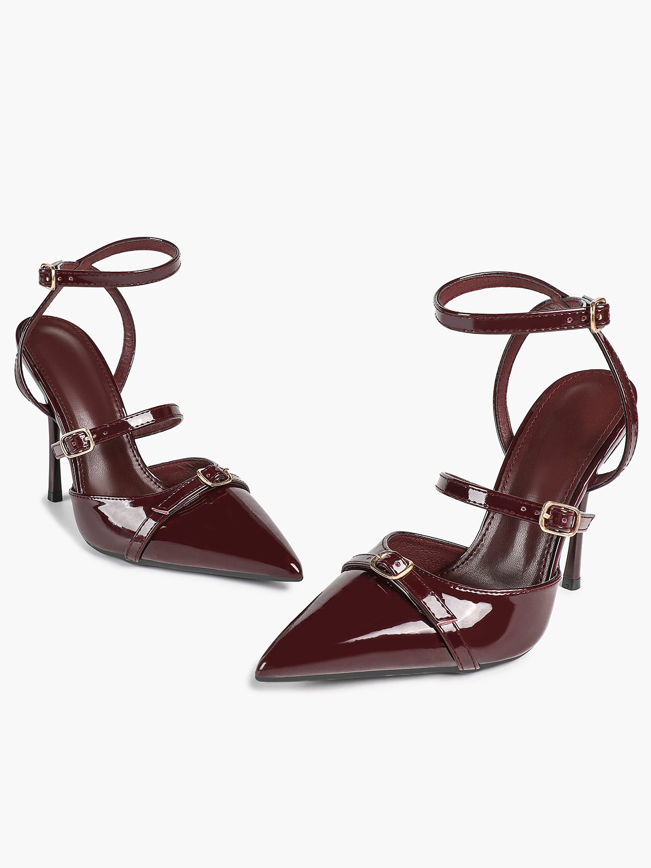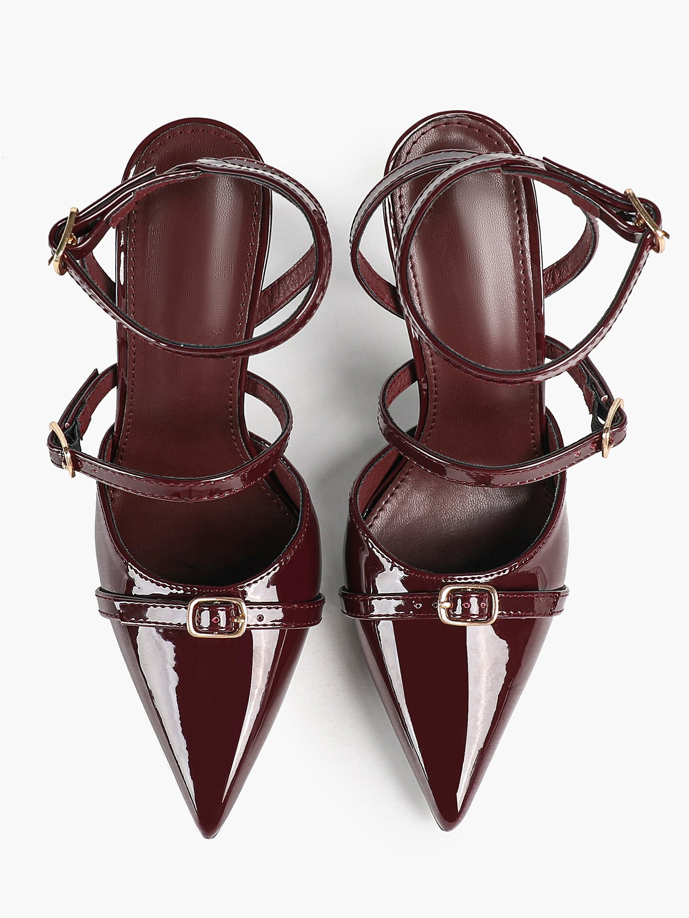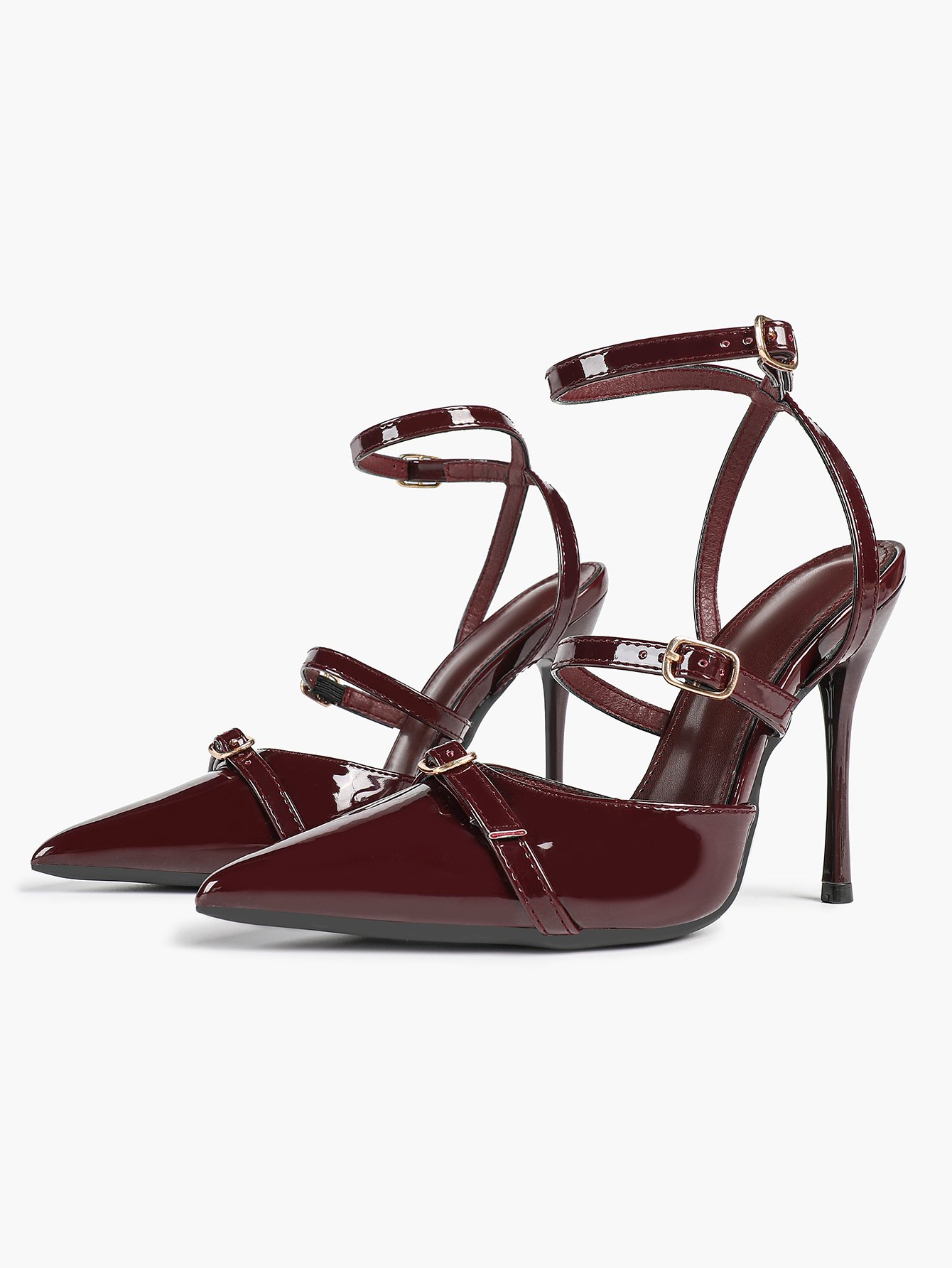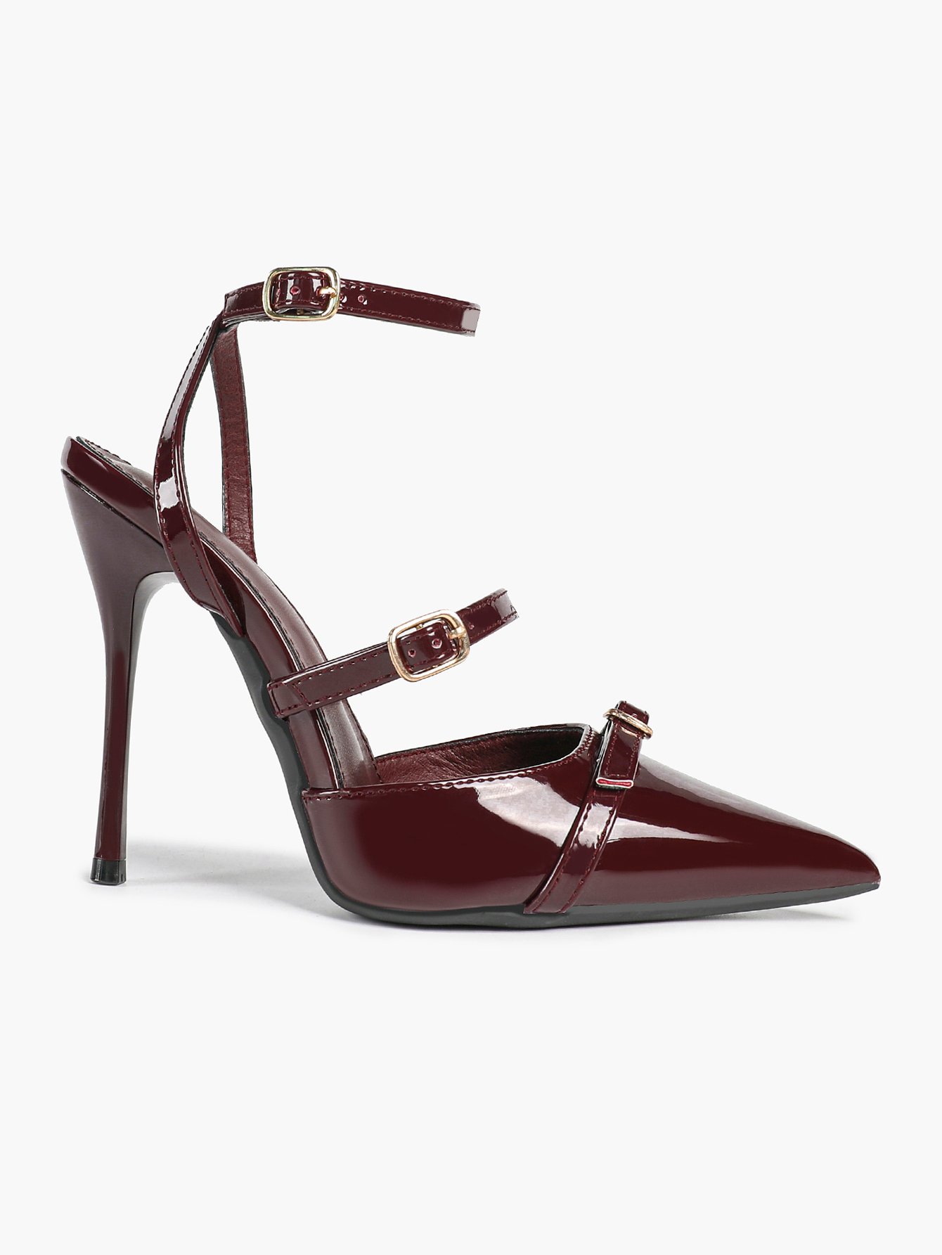 Command attention with these Burgundy Patent Multi-Strap Stilettos.