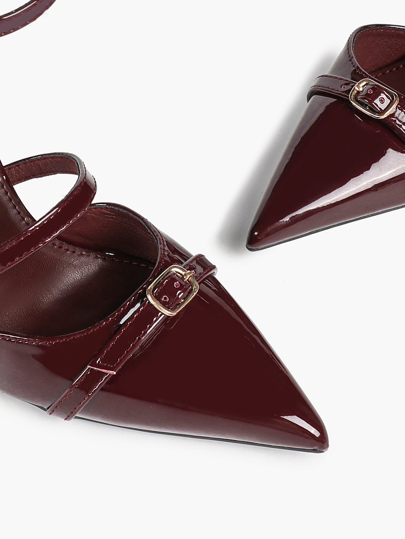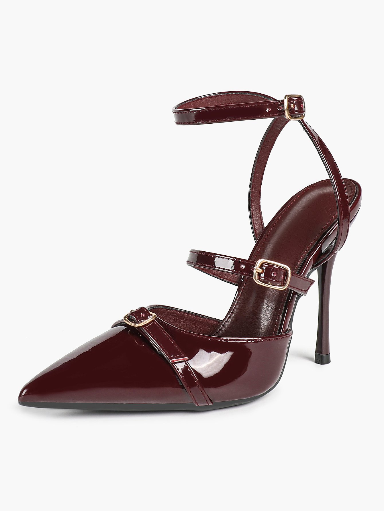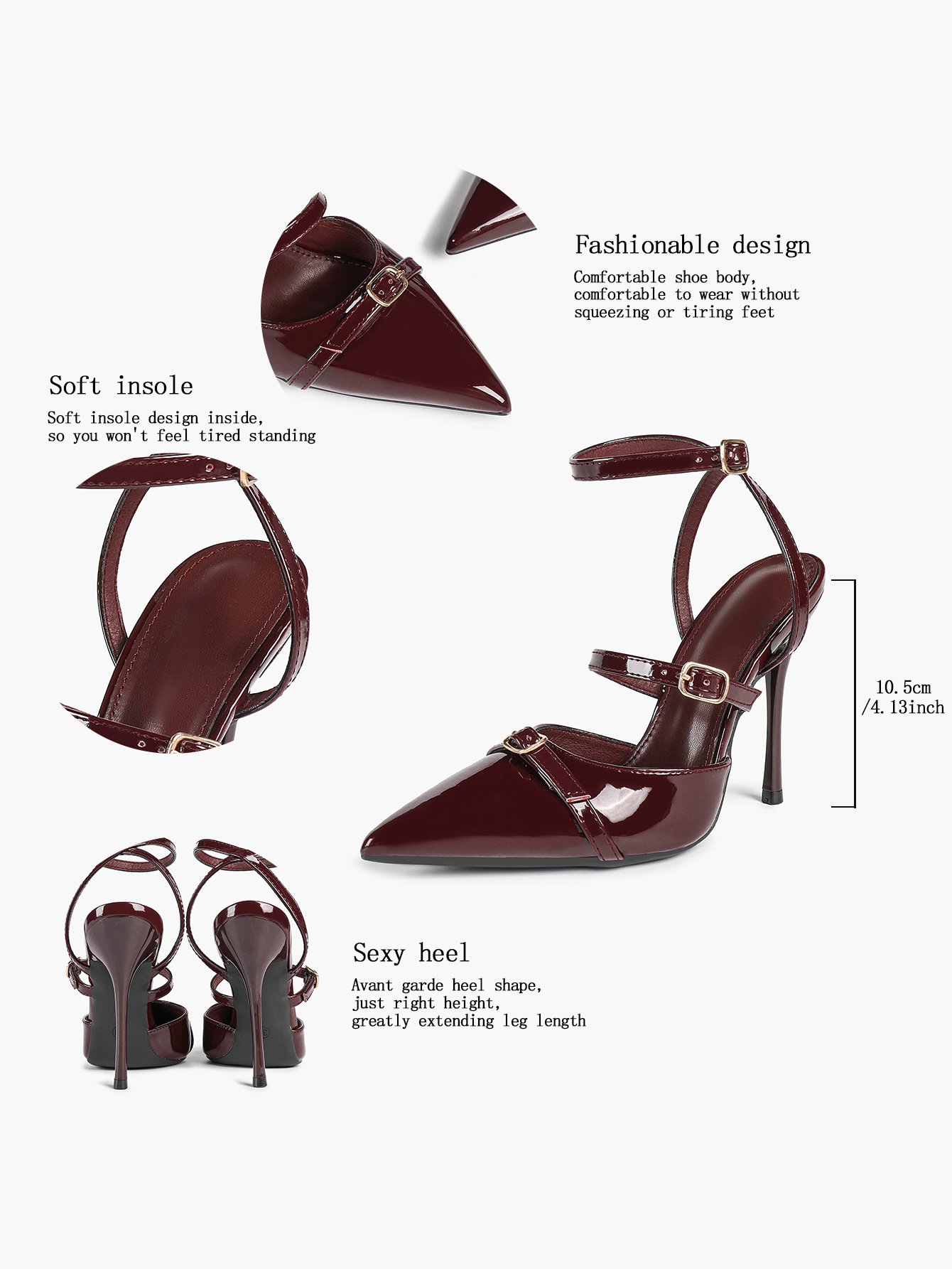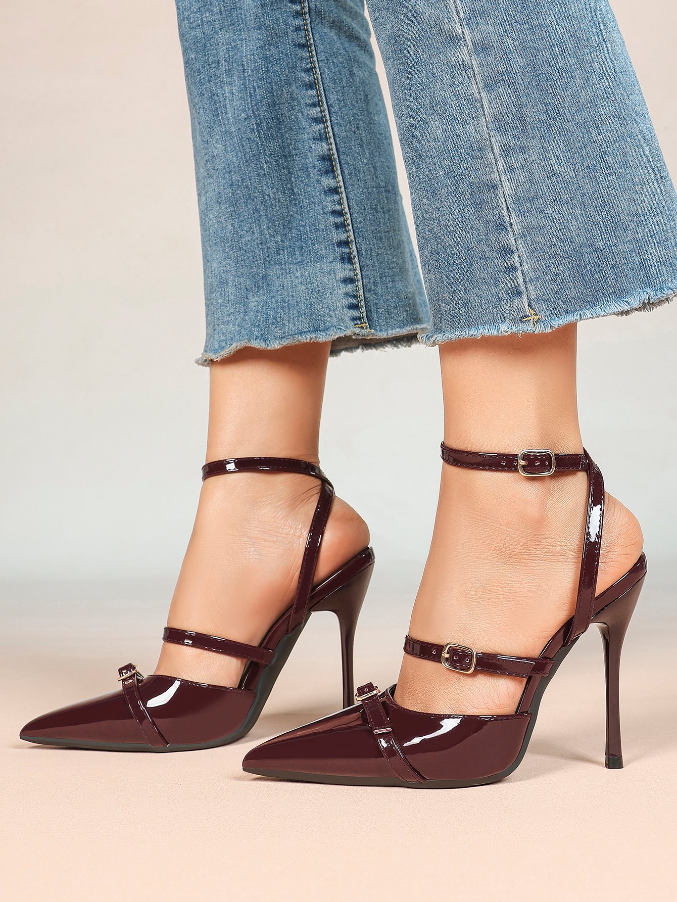 Command attention with these Burgundy Patent Multi-Strap Stilettos.