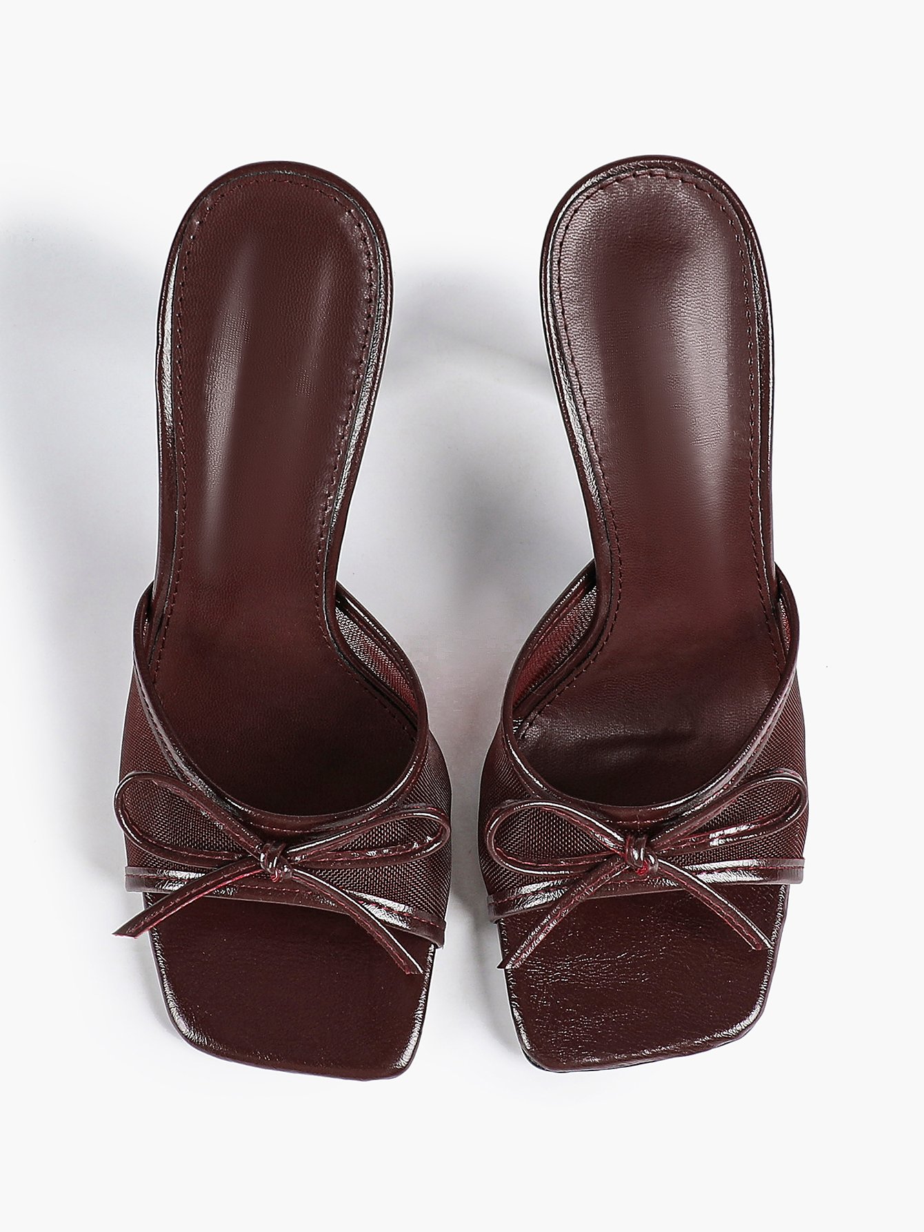 Be the first to review “Elegant Nude Mesh Square Toe Stiletto Mules with Bow Detail”
