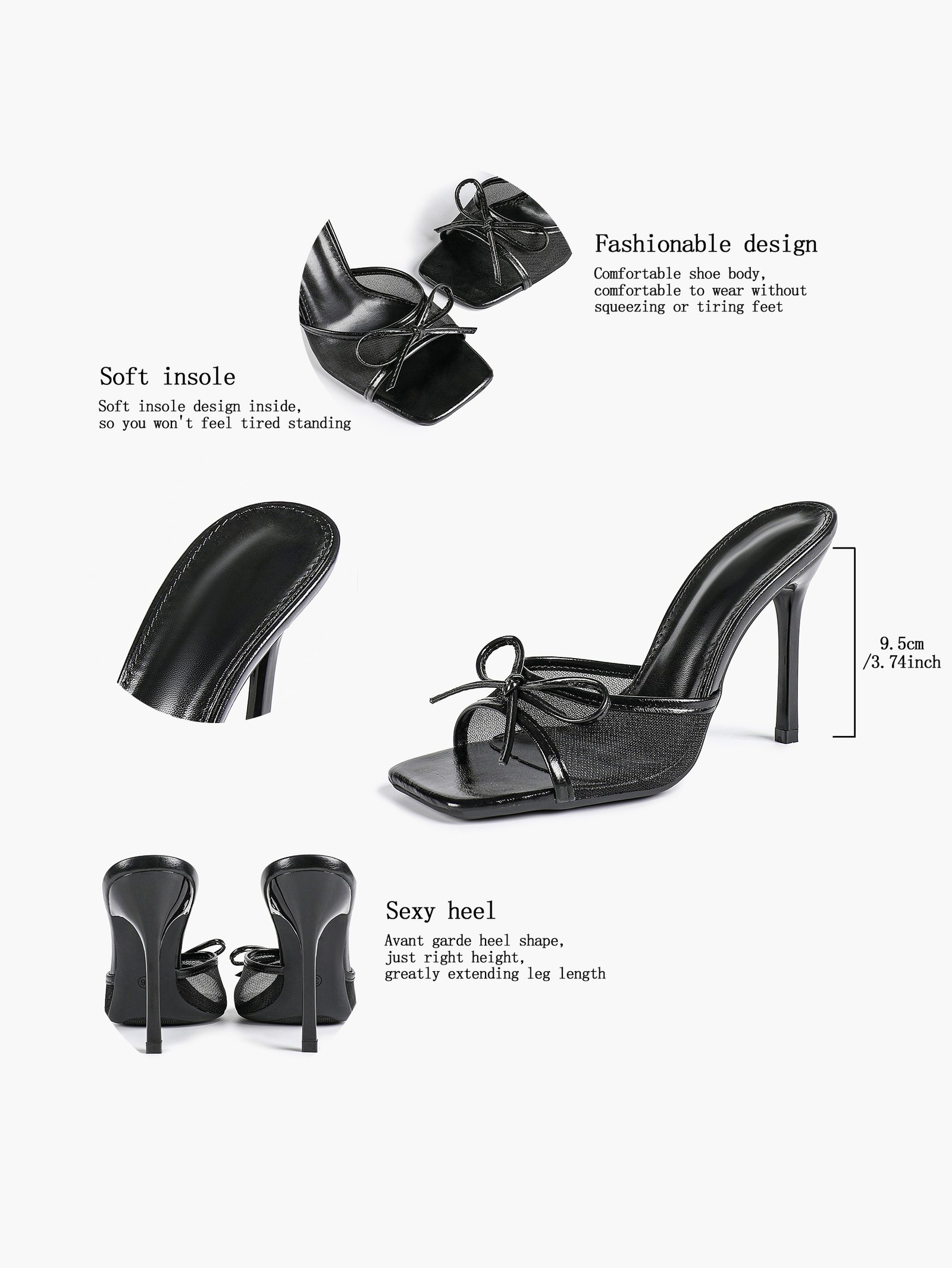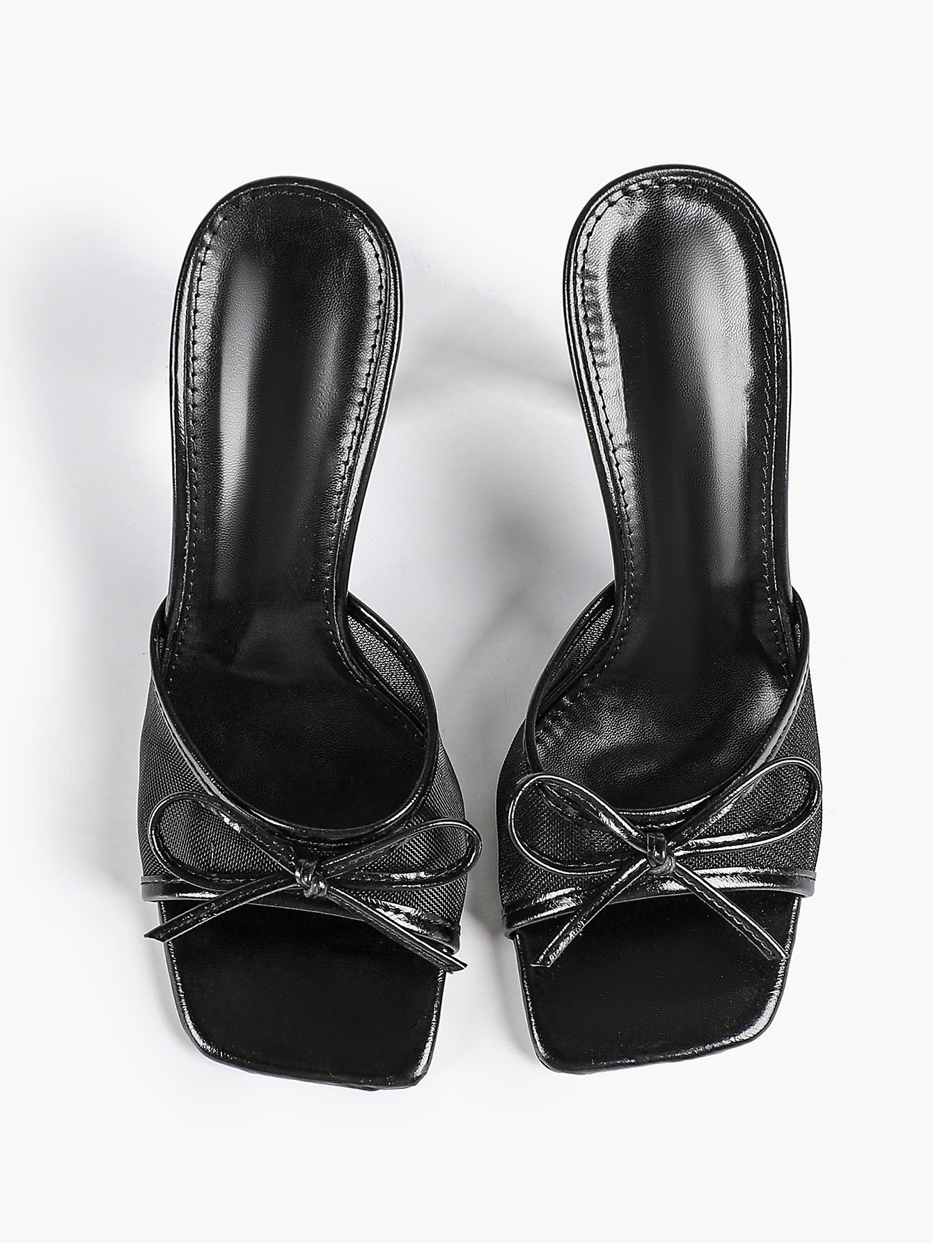 Mesh Bow Square Toe Stiletto Mules | Versatile Daily Party Wedding Heels