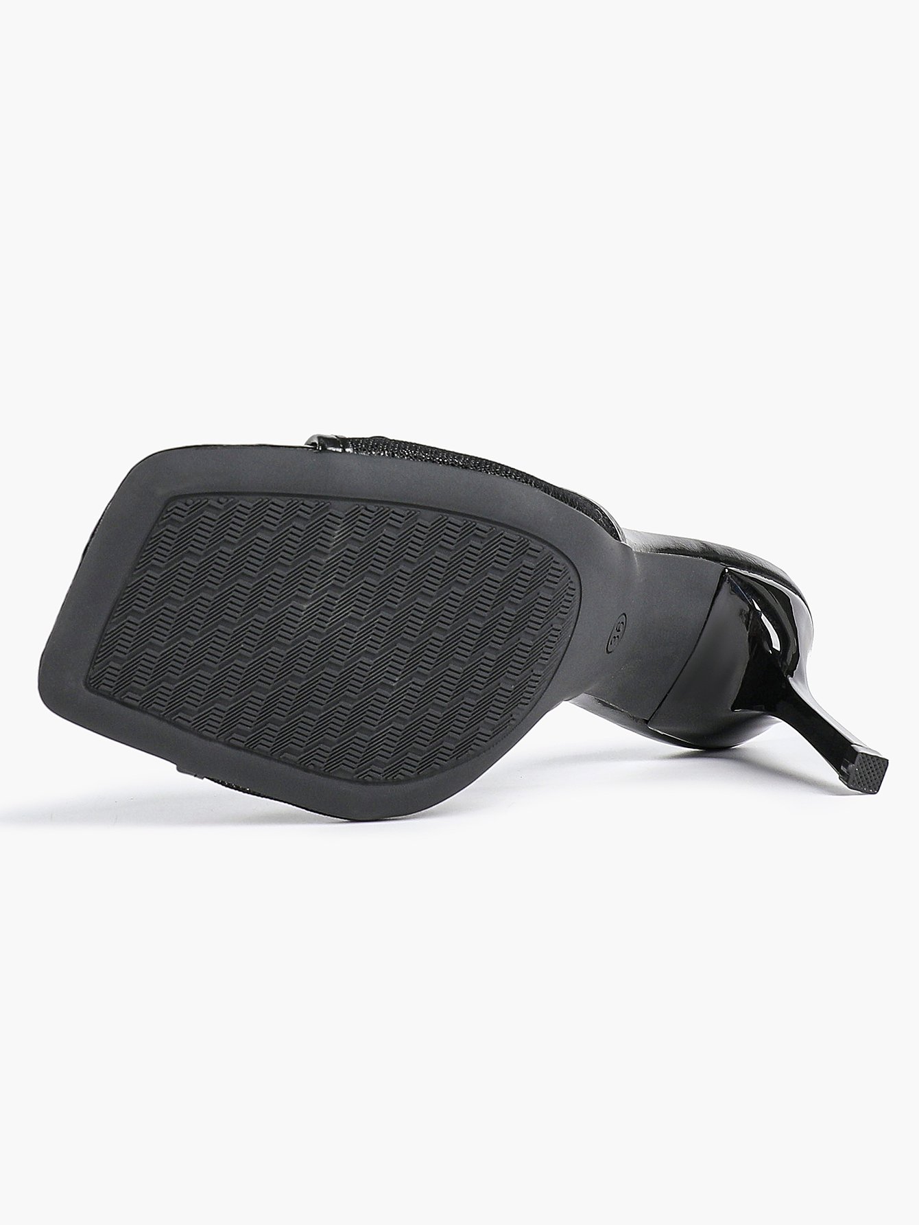 • Modern open‑toe mule stilettos with a fashion‑forward bow detail.