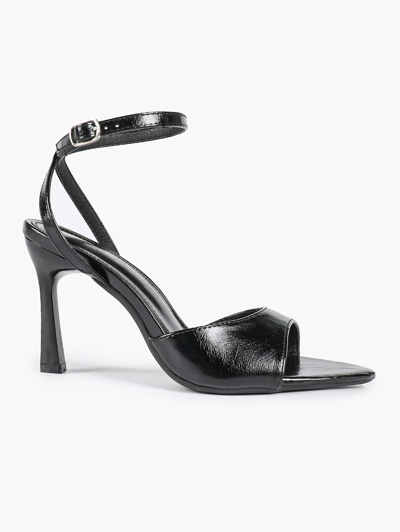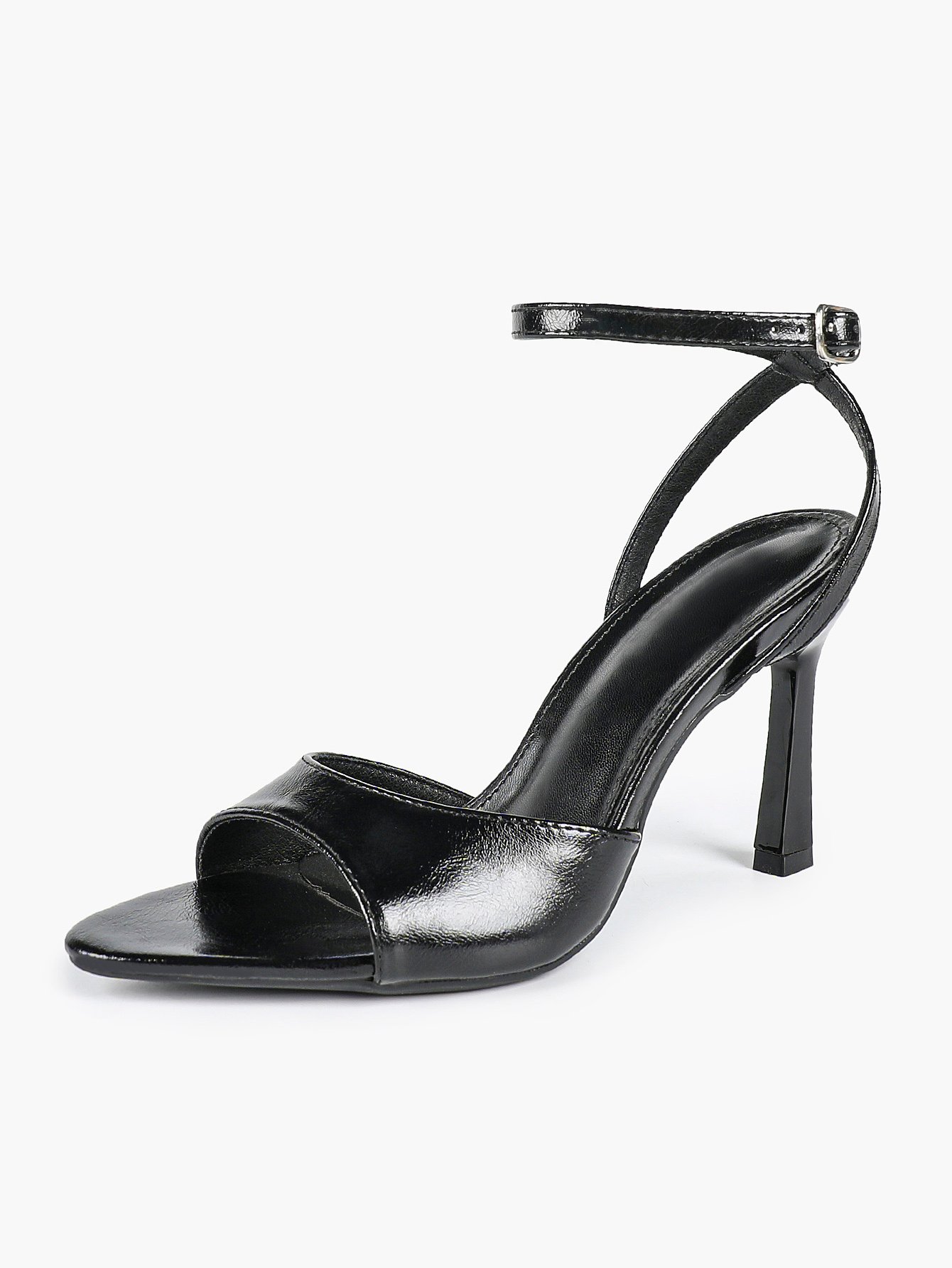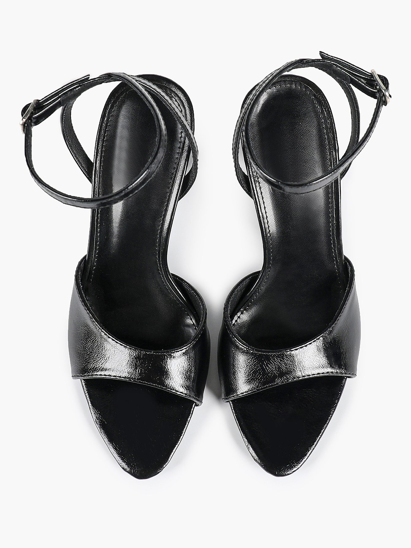 • Strap: Matching glossy ankle strap with metal buckle