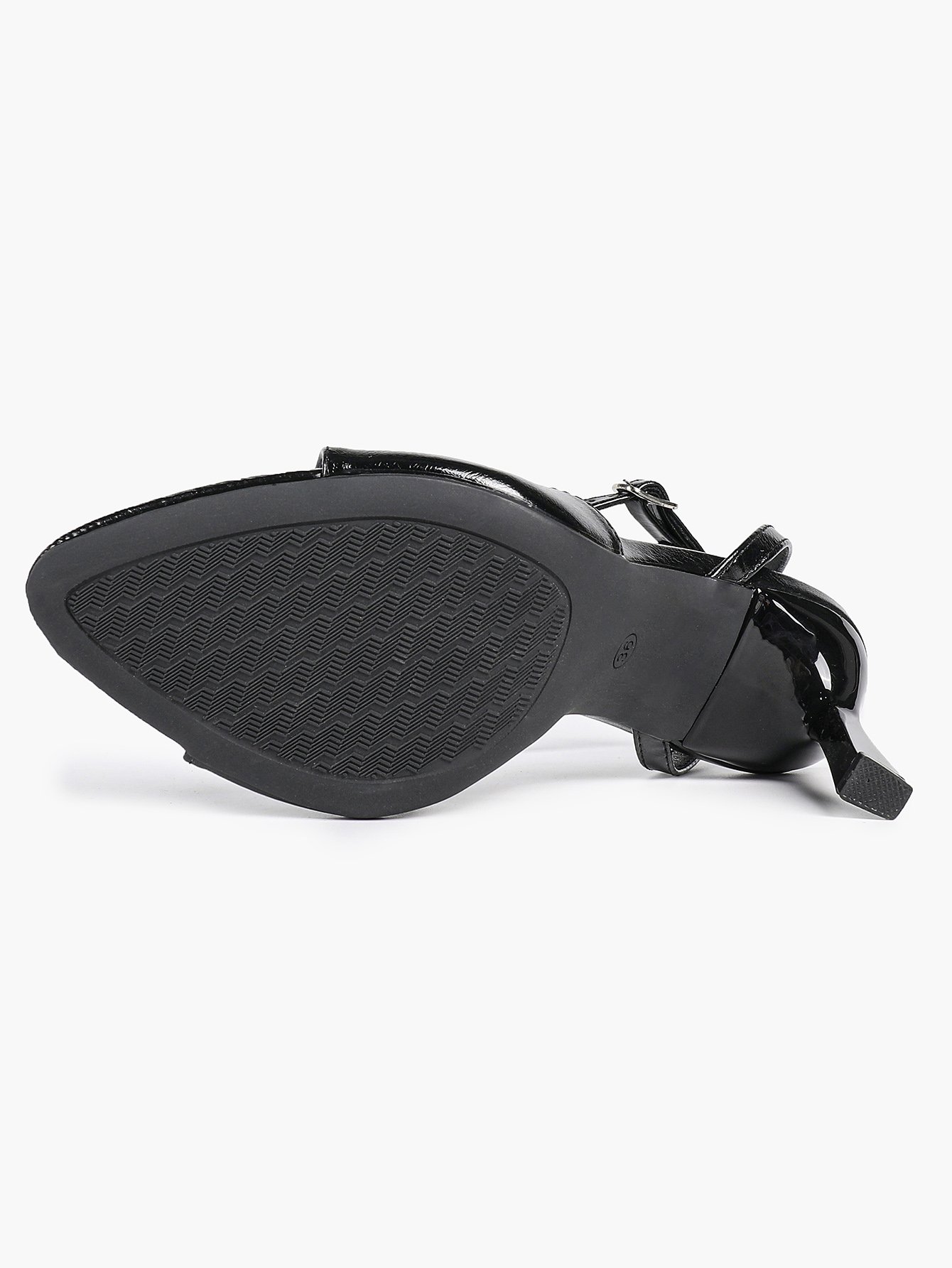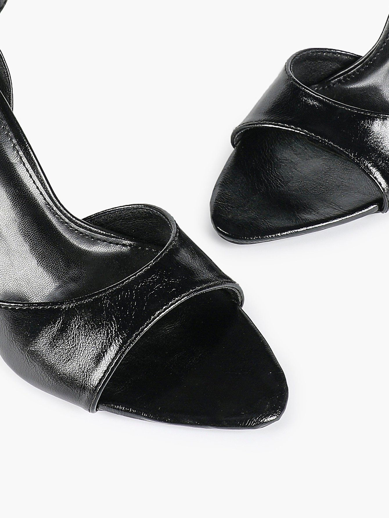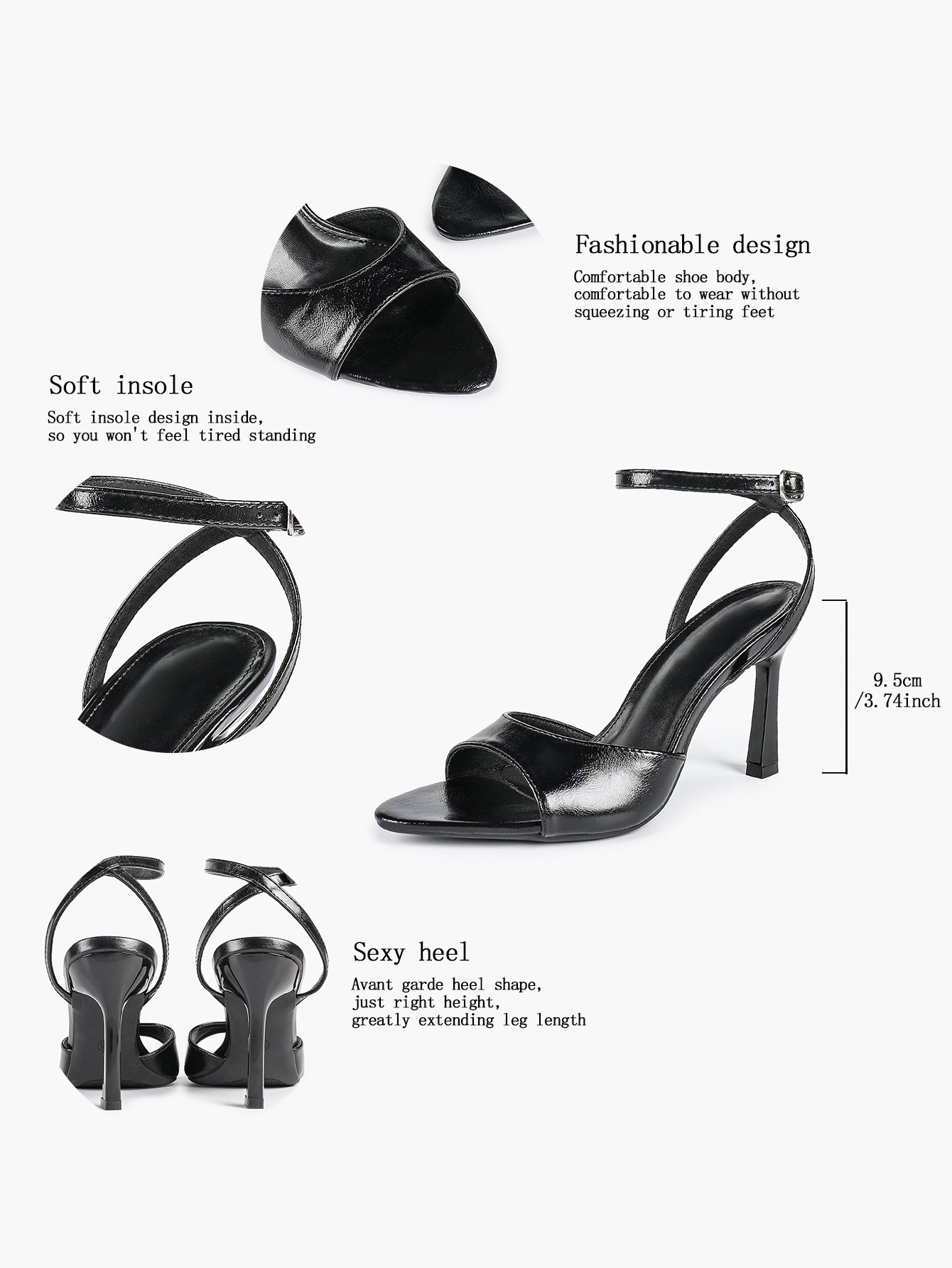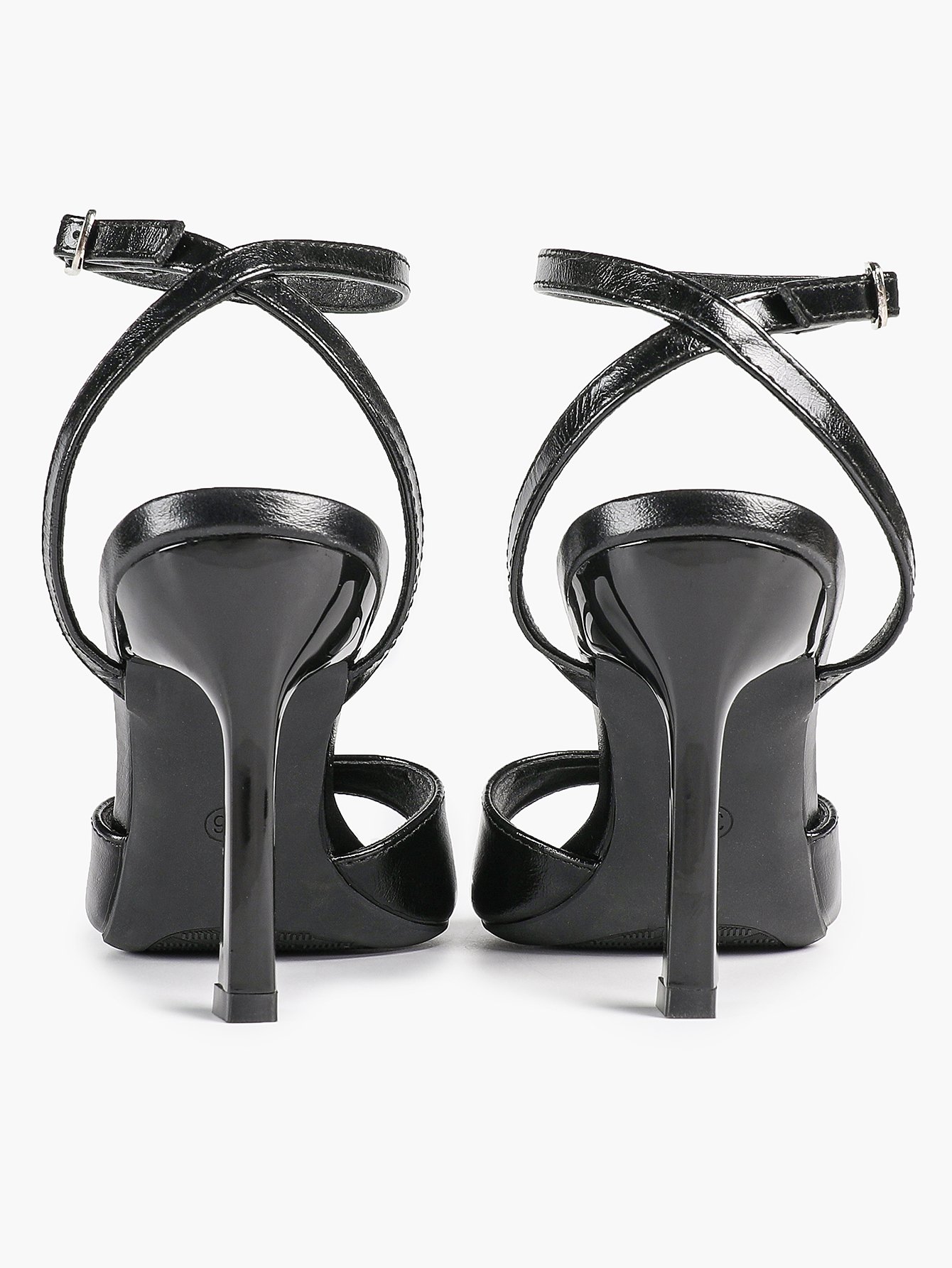 • Strap: Matching glossy ankle strap with metal buckle