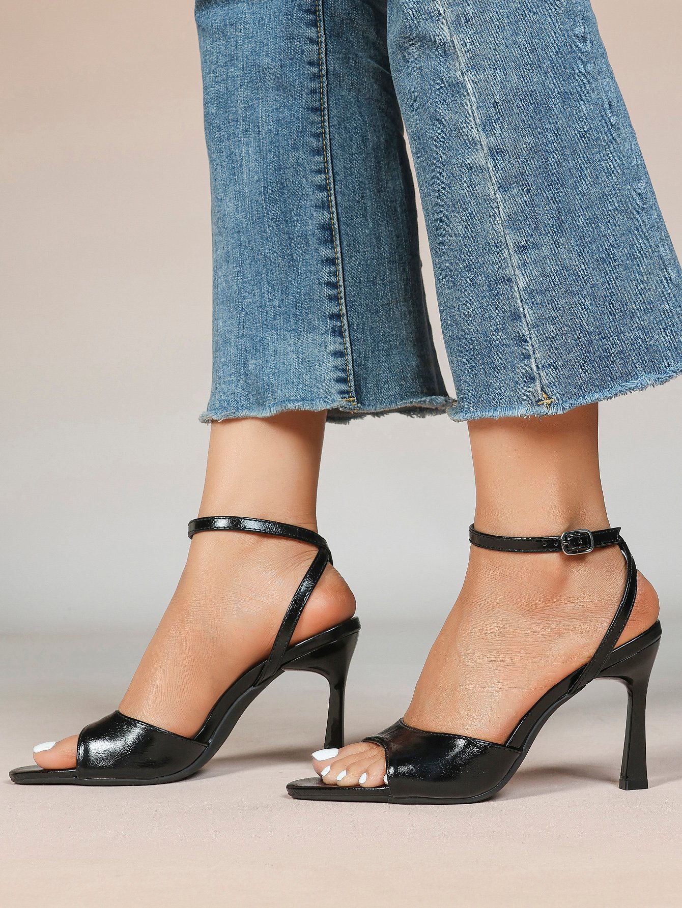 Patent Crisscross Ankle Strap Square Toe Stiletto Sandals | Office Casual Shoes