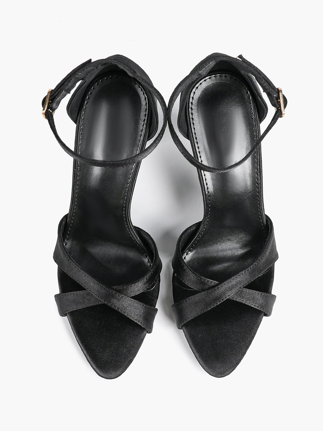Step into luxury with these Satin Crisscross Ankle Strap Sandals.