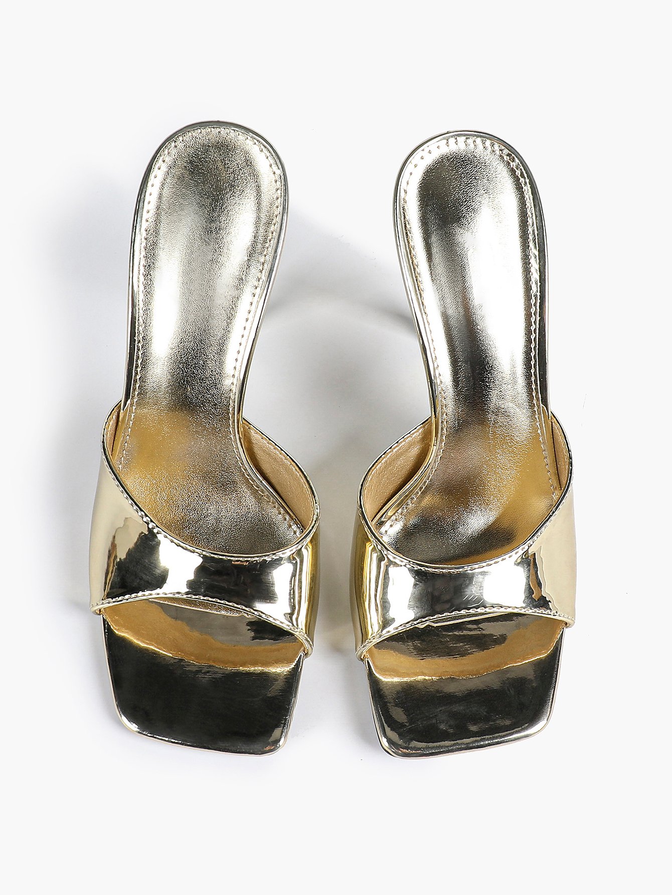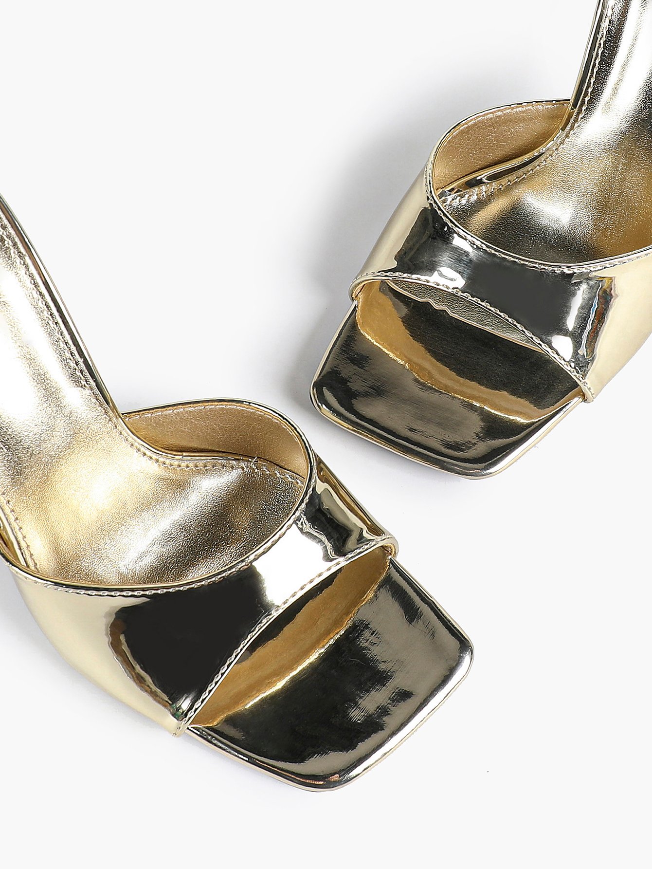 Square Toe Stiletto Mules in White Gold Silver | Party Heels