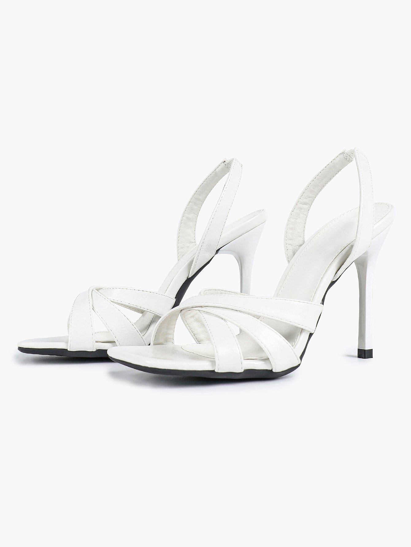 - Style: Elegant slingback stiletto sandals with a square toe and crisscross strap design.