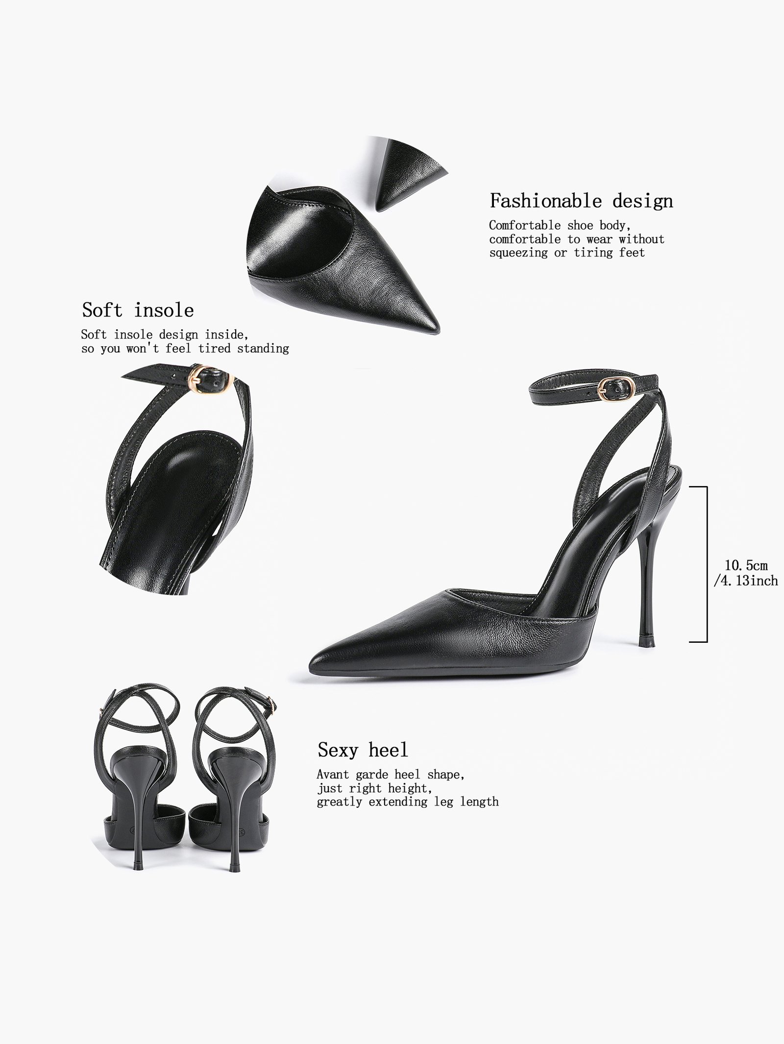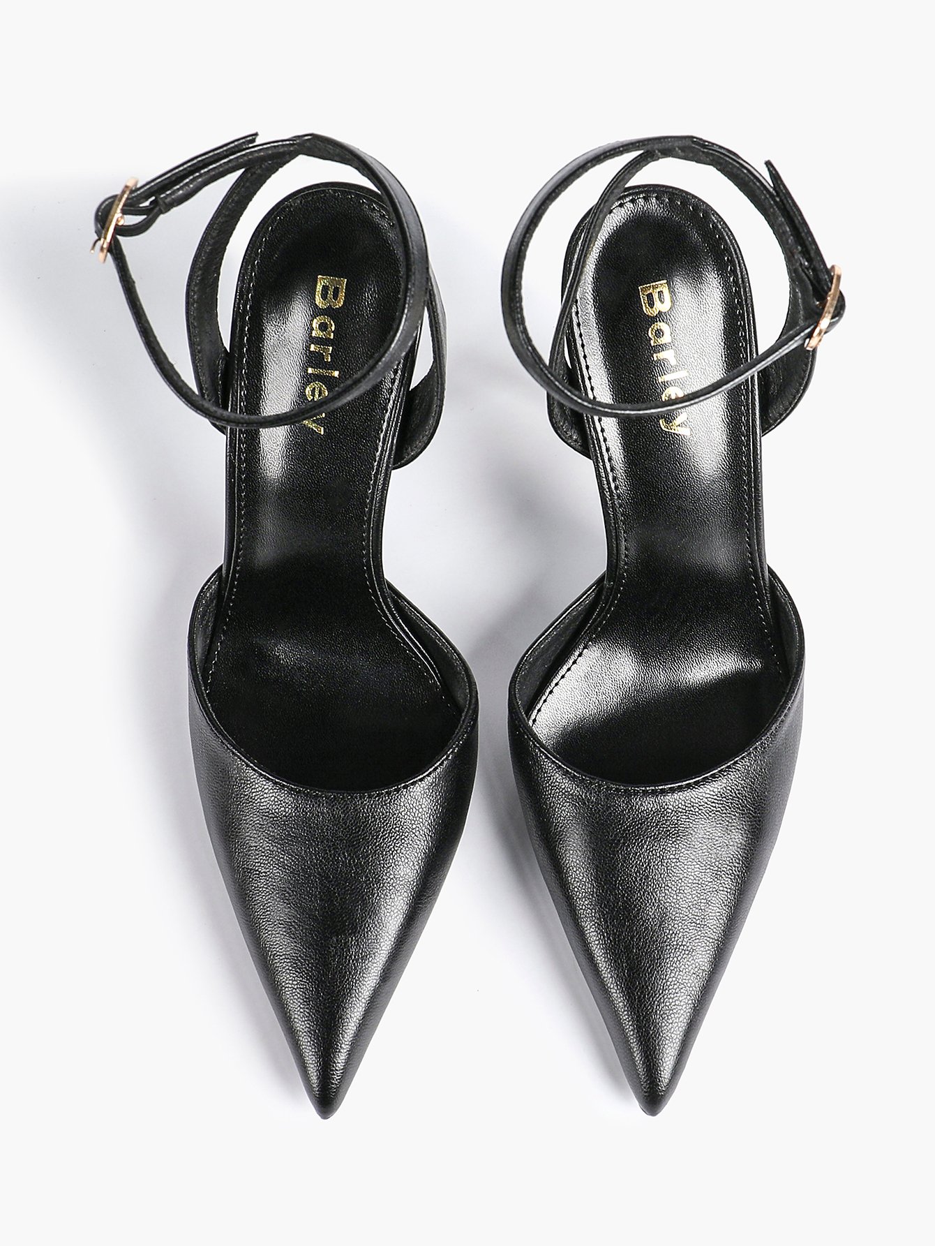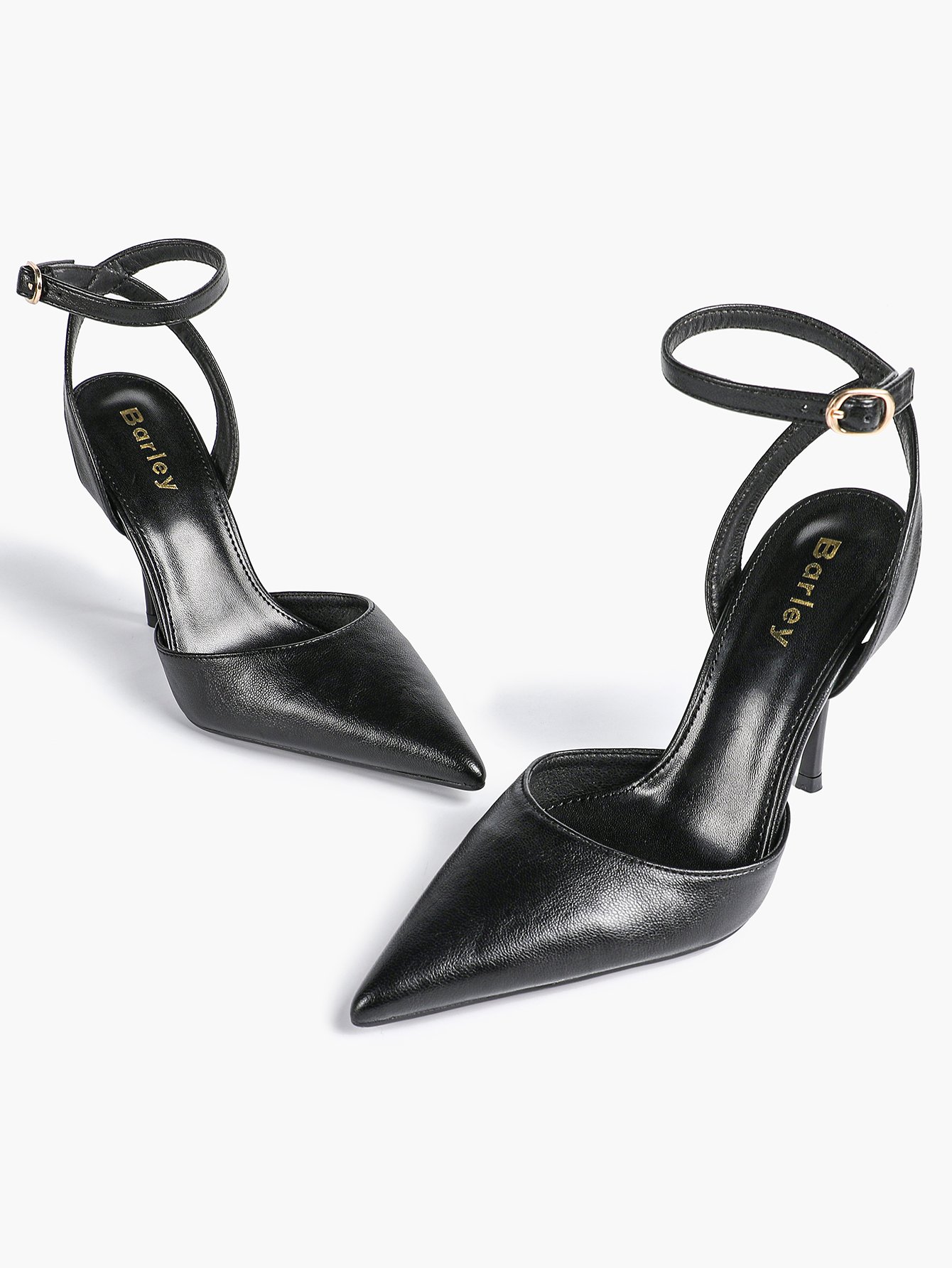 Step into timeless elegance with our Women’s Black Leather Ankle Strap Pointed Toe Stilettos.