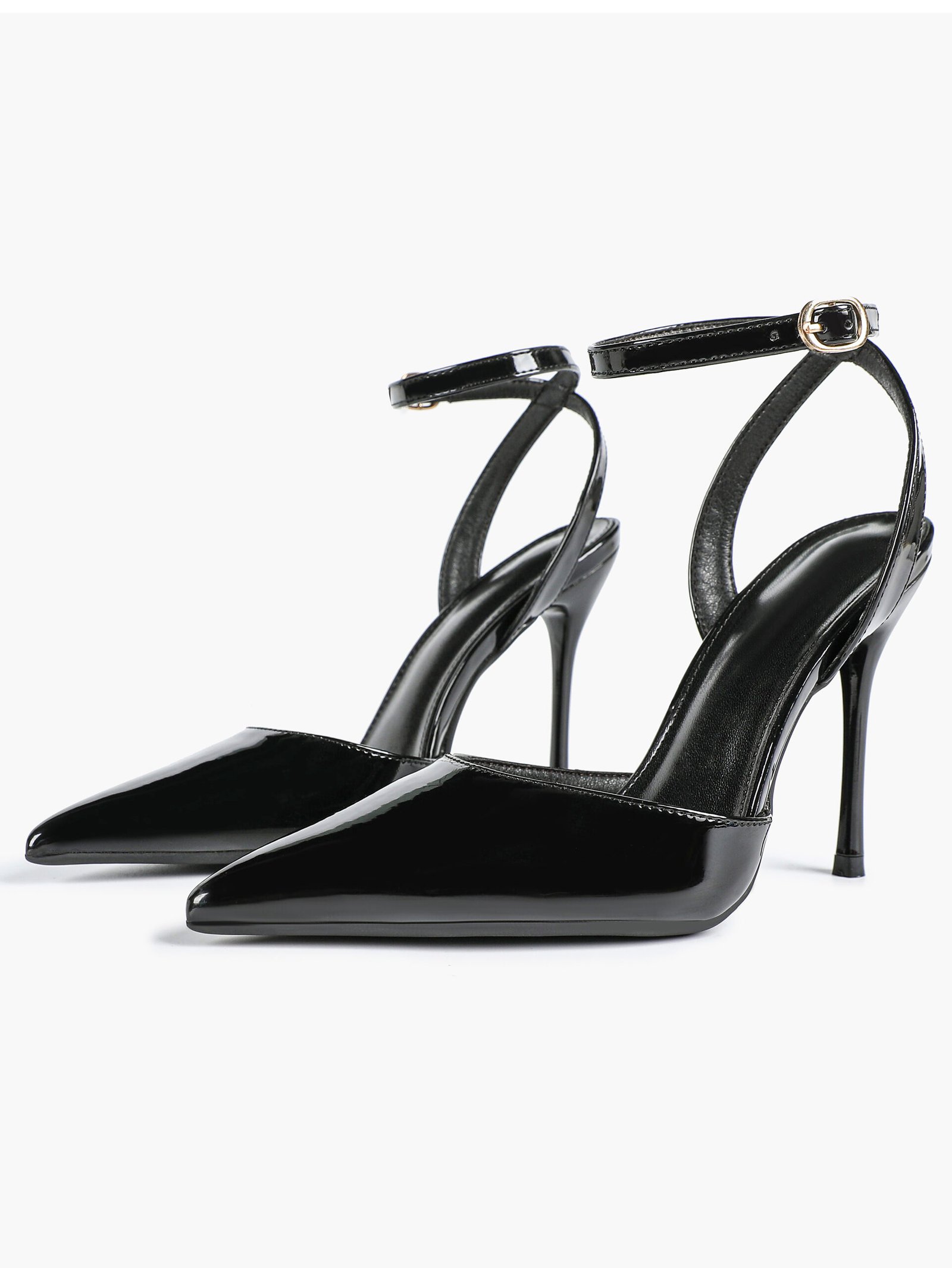 Slim ankle strap with metallic buckle for a secure, stylish fit