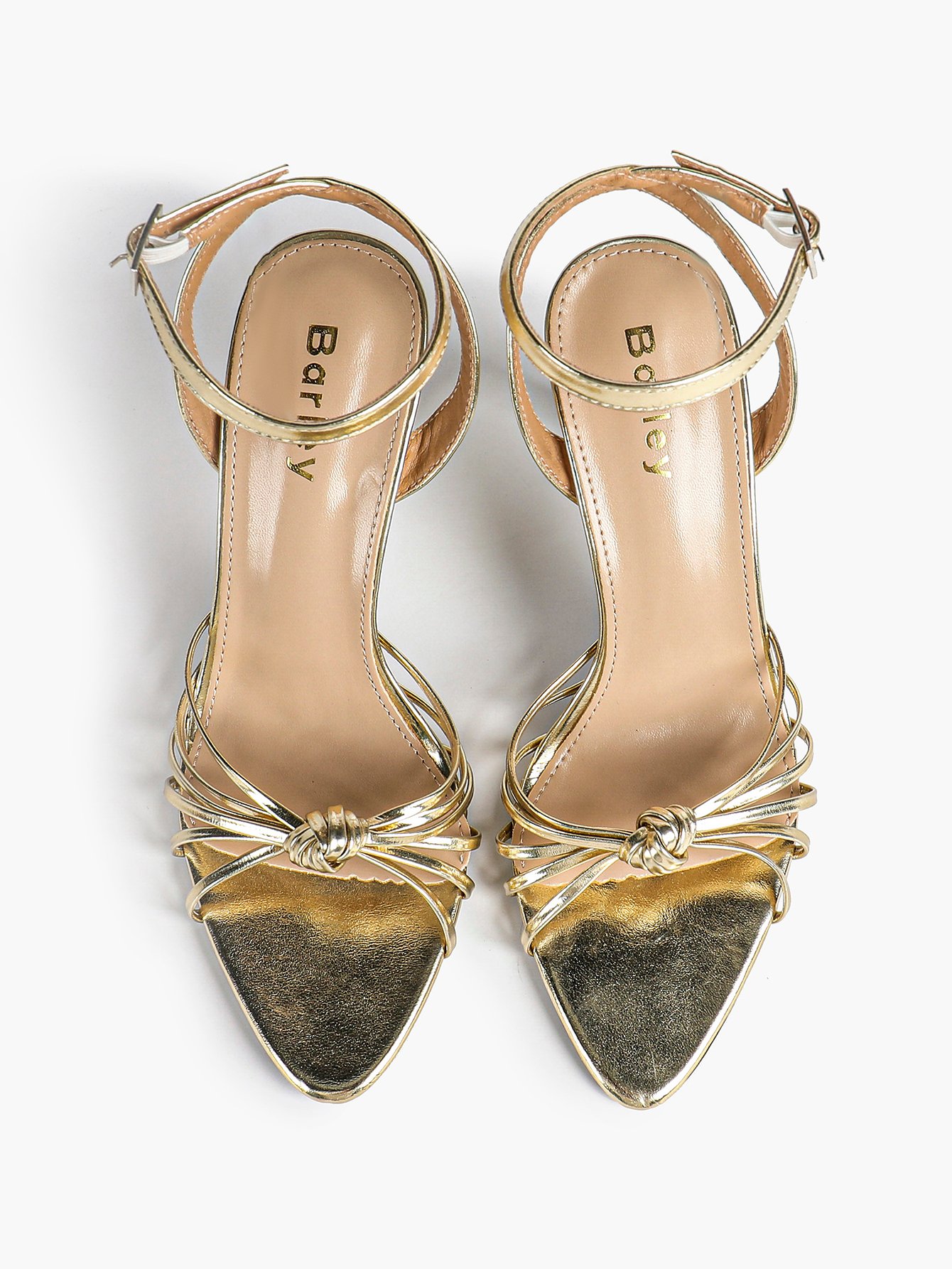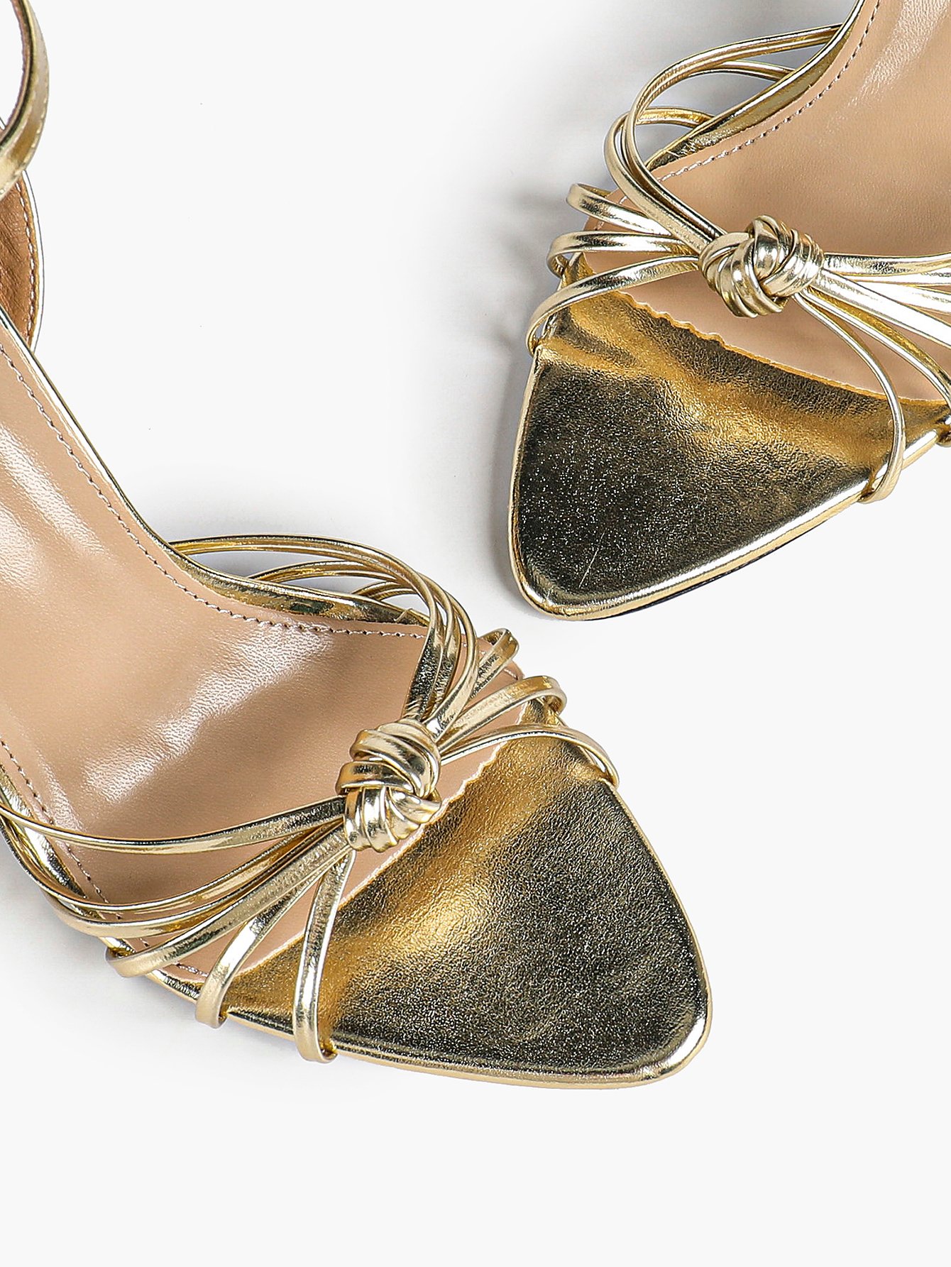 Women’s Metallic Knotted Strap Pointed Toe Stiletto Sandals