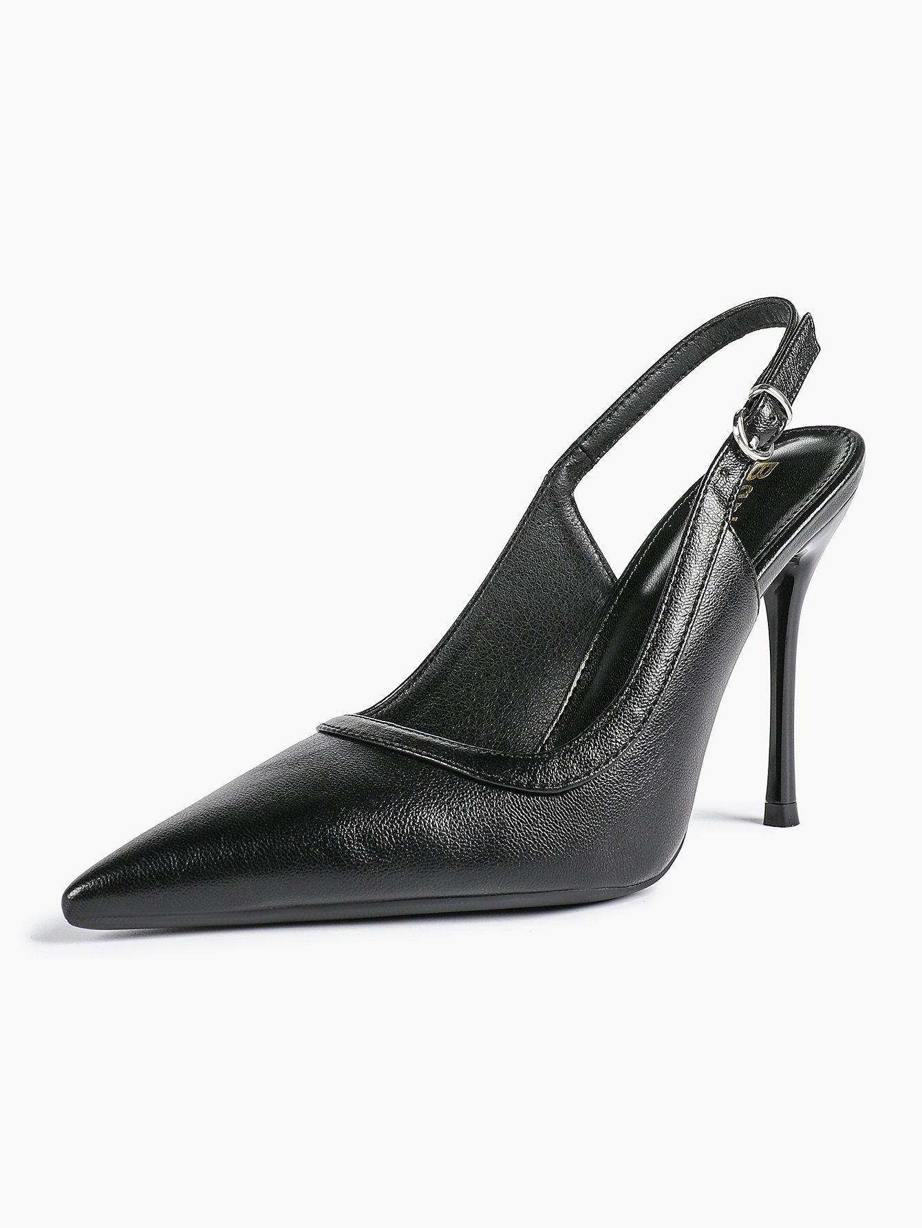 The pointed toe creates a sleek, elongated silhouette, while the adjustable slingback strap ensures a secure, comfortable fit with every step.