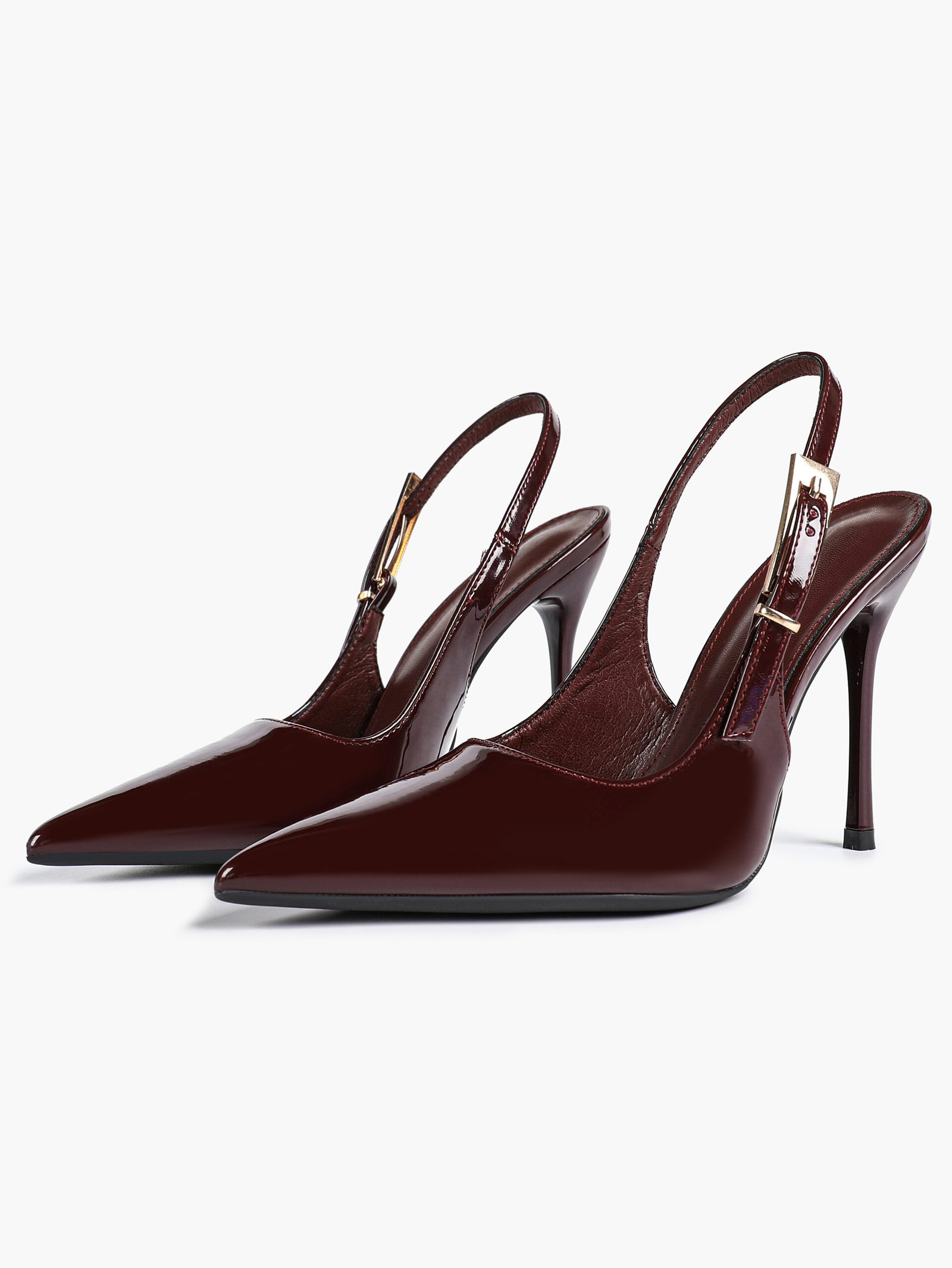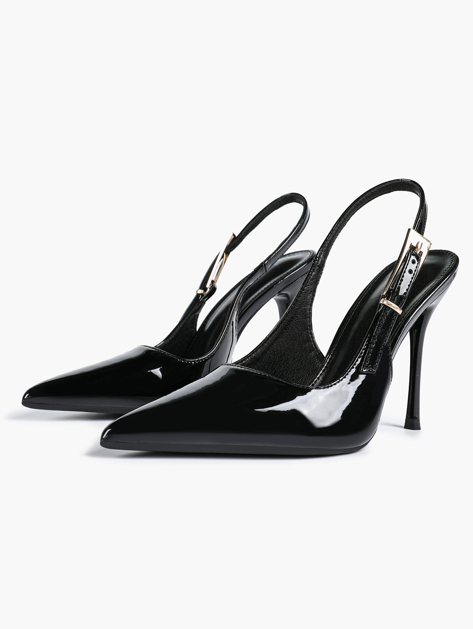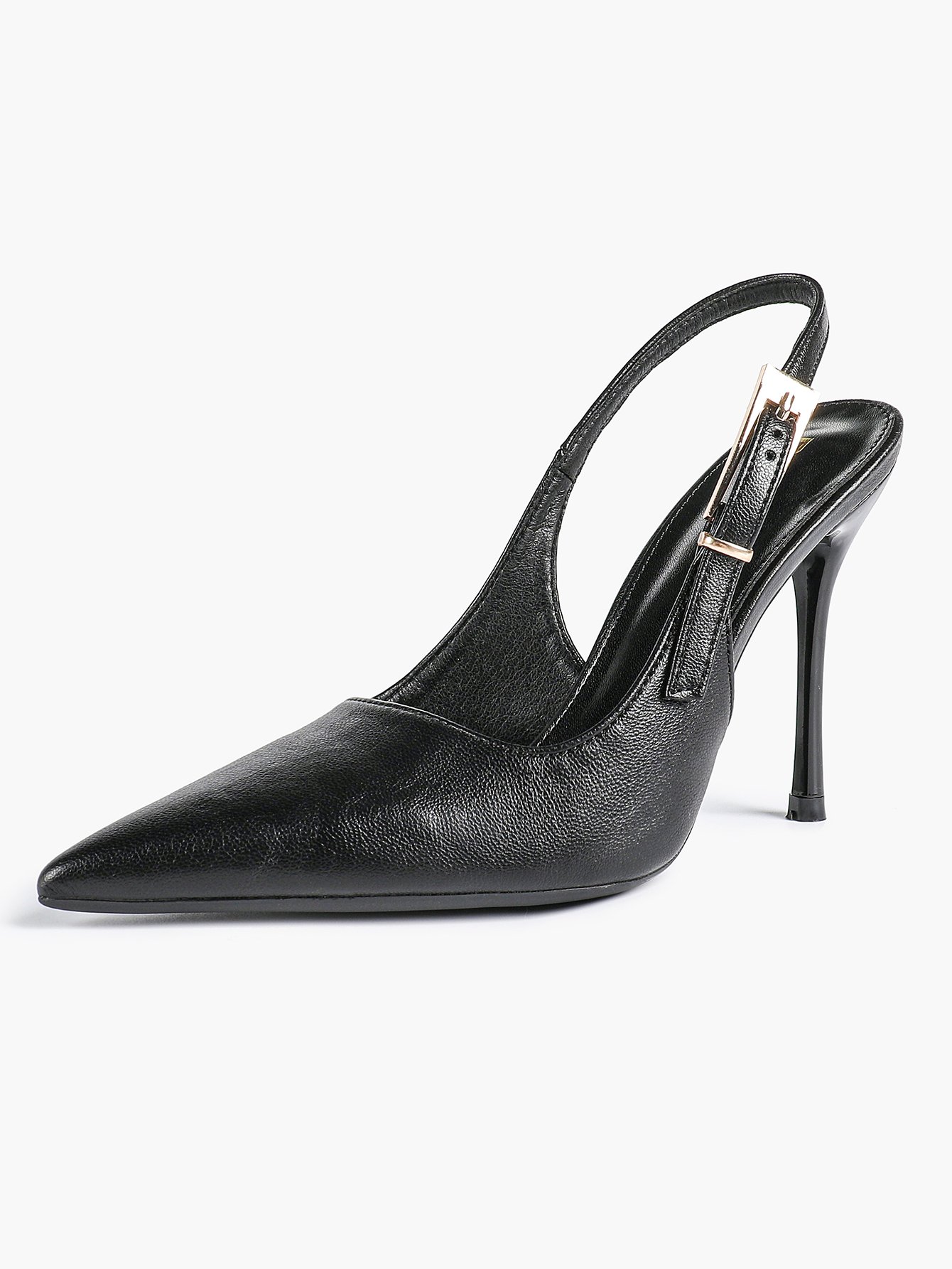 The pointed toe creates a sleek, elongated silhouette, while the adjustable slingback strap ensures a secure, comfortable fit throughout the day.